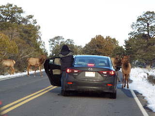 The elk and deer wander freely at the sides of the roads. One thing though: If you visit places where animals roam freely PLEASE don't get out of your car to take selfies with them! They may be beautiful but THEY. ARE. WILD!
